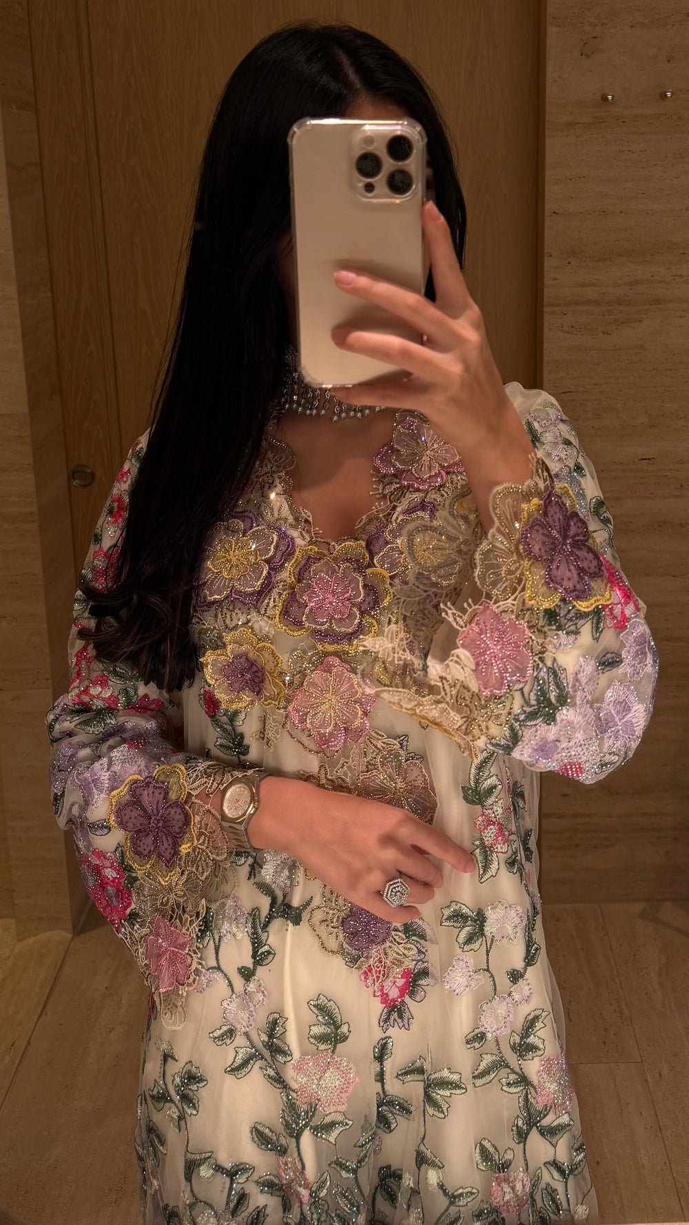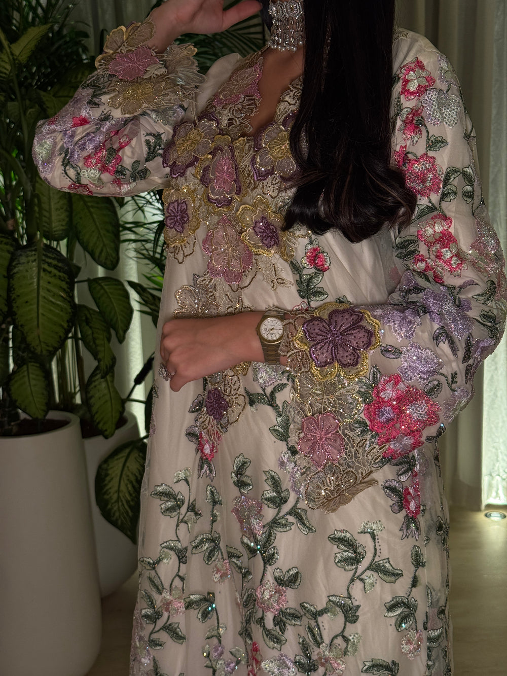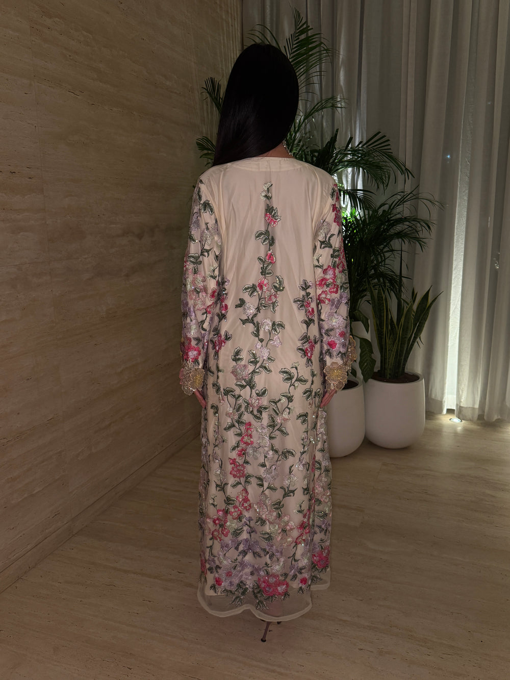 Sleeves: Relaxed, flared sleeves with ornate embroidered edges.