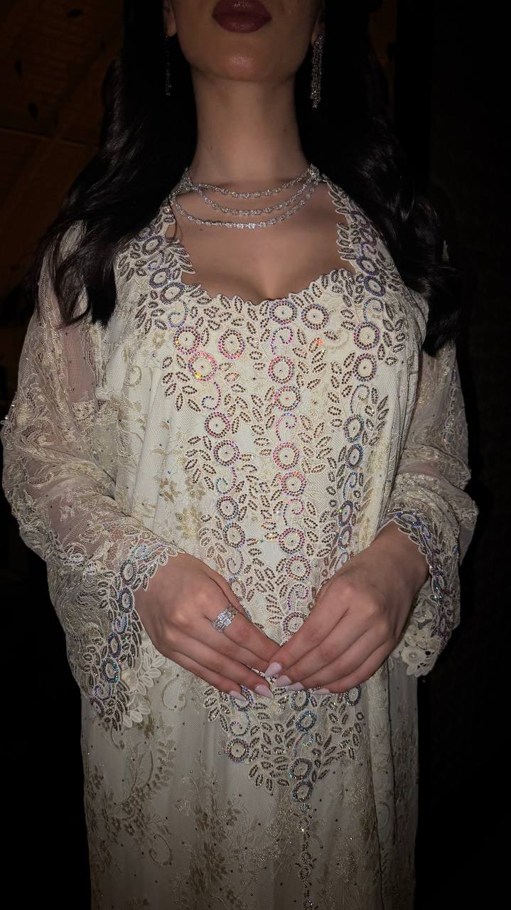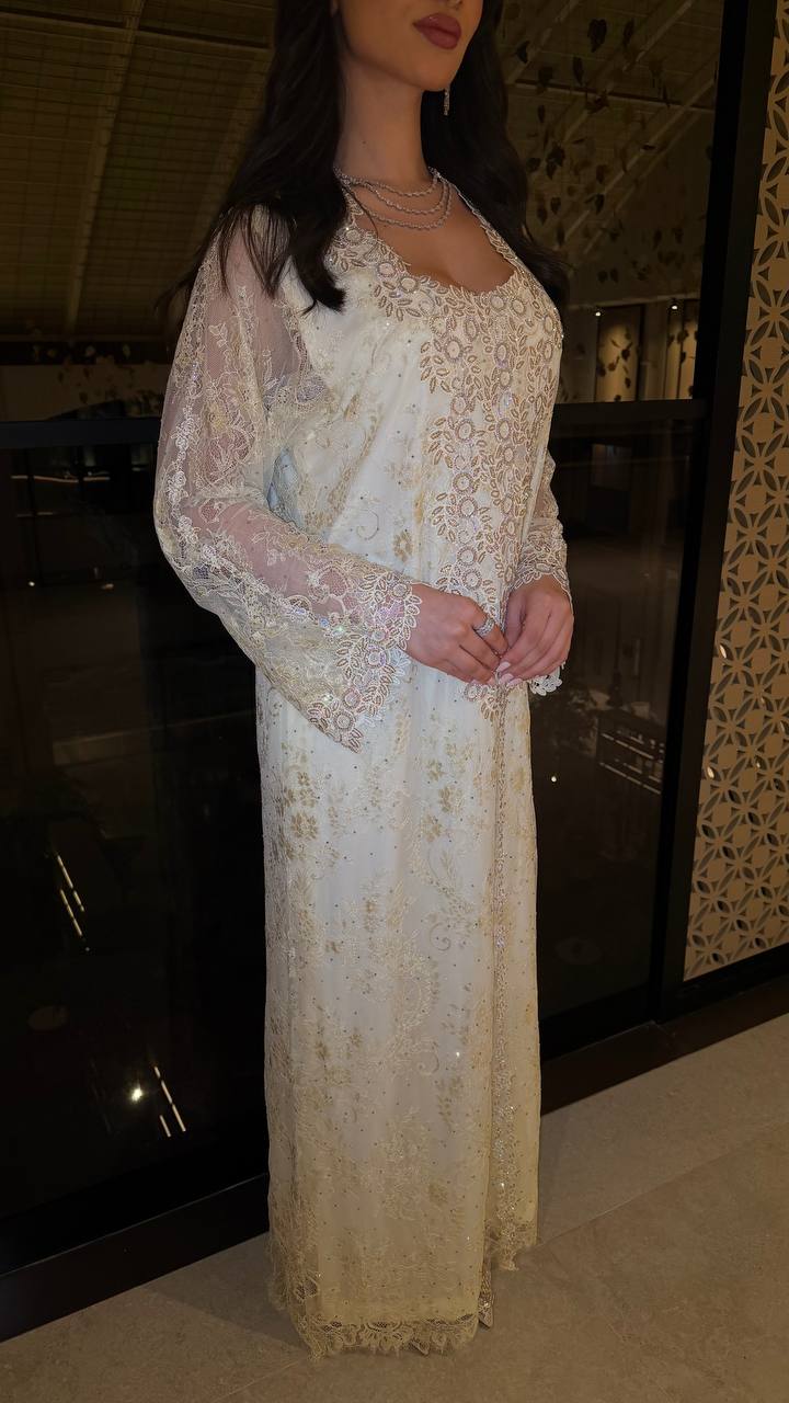 Luxurious jalabiya in a soft ivory shade, radiating timeless elegance