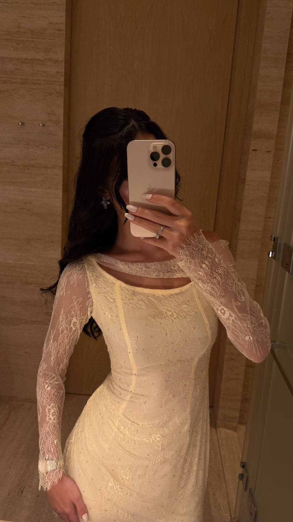Use low heat only. A garment steamer is recommended to remove wrinkles gently, especially for lace, chiffon, silk, or embellished pieces.