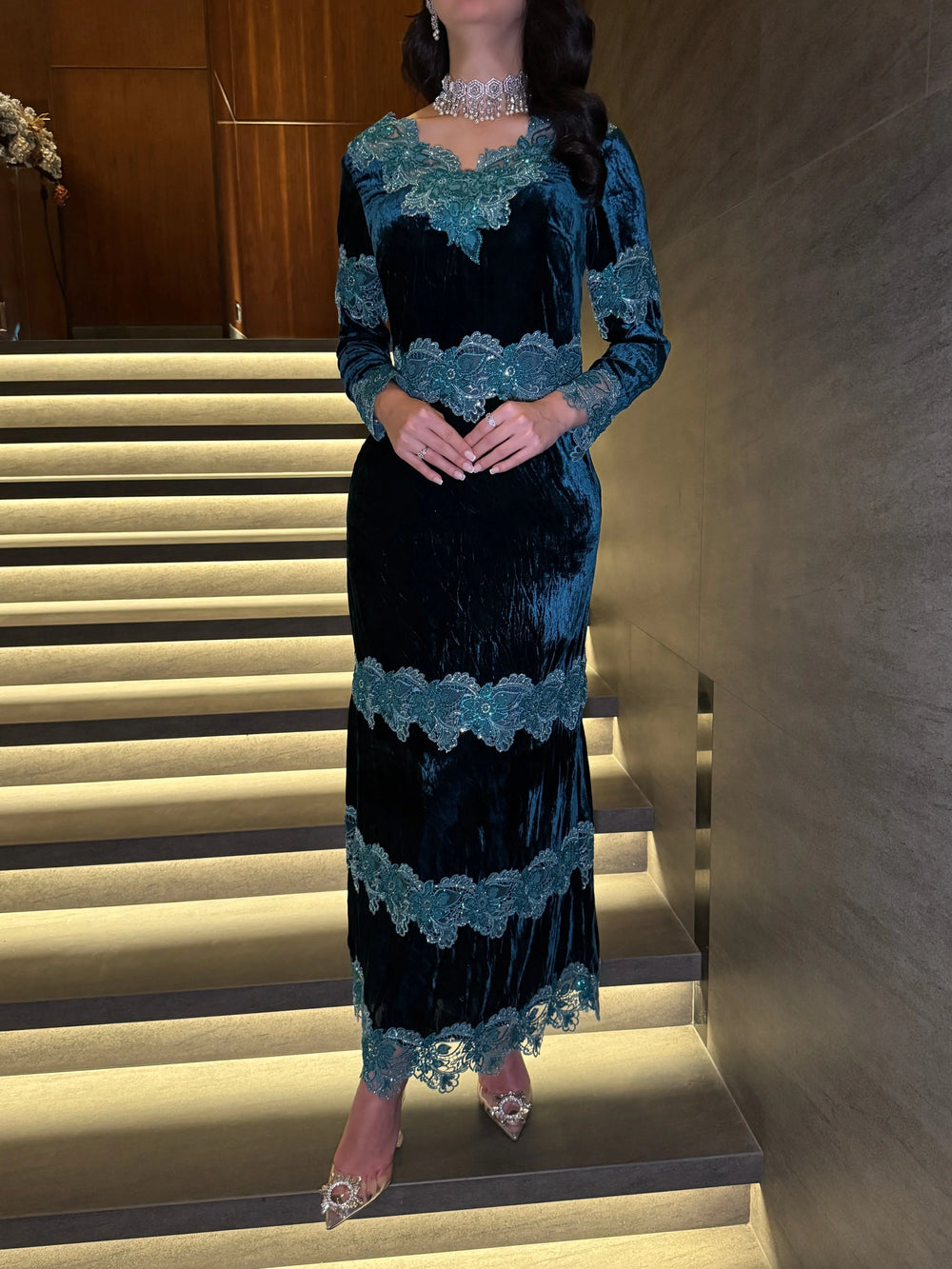 Silk, chiffon, lace, tulle, and beaded/embroidered dresses should be professionally dry cleaned for best results. Spot clean immediately if needed using a soft cloth.